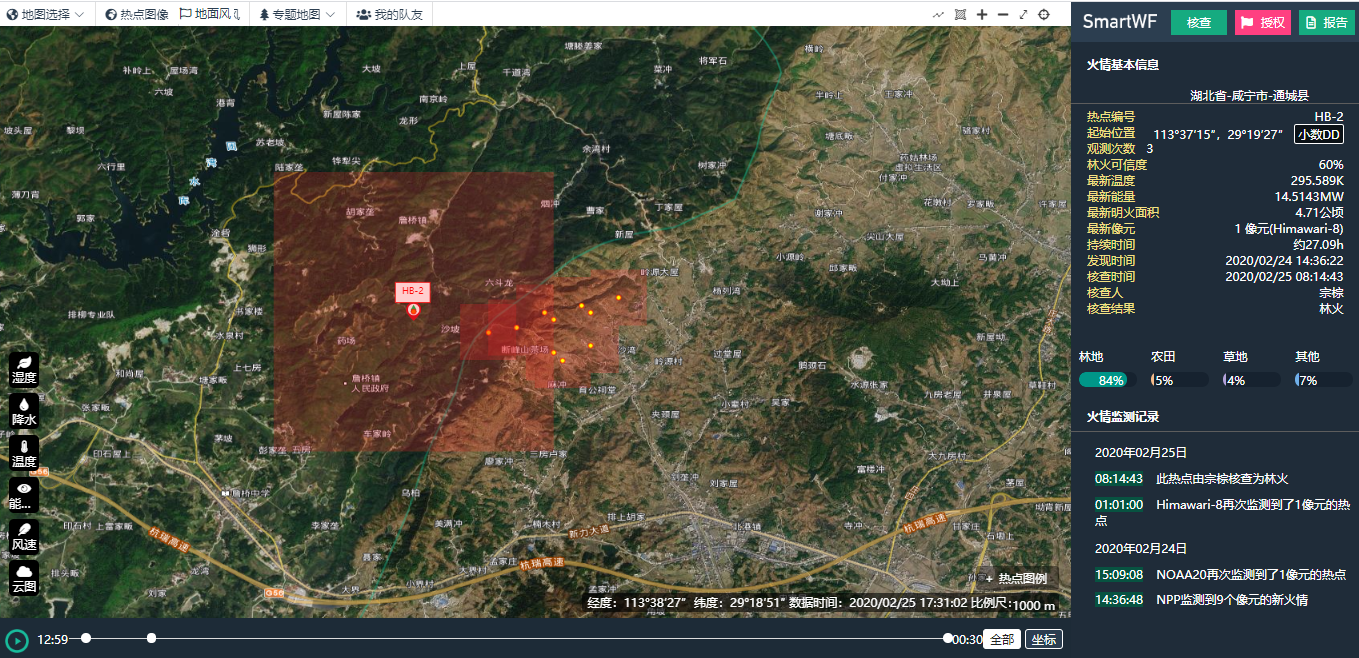 湖北省咸寧市通城縣森林火災(zāi) 衛(wèi)星遙感監(jiān)測(cè)情況