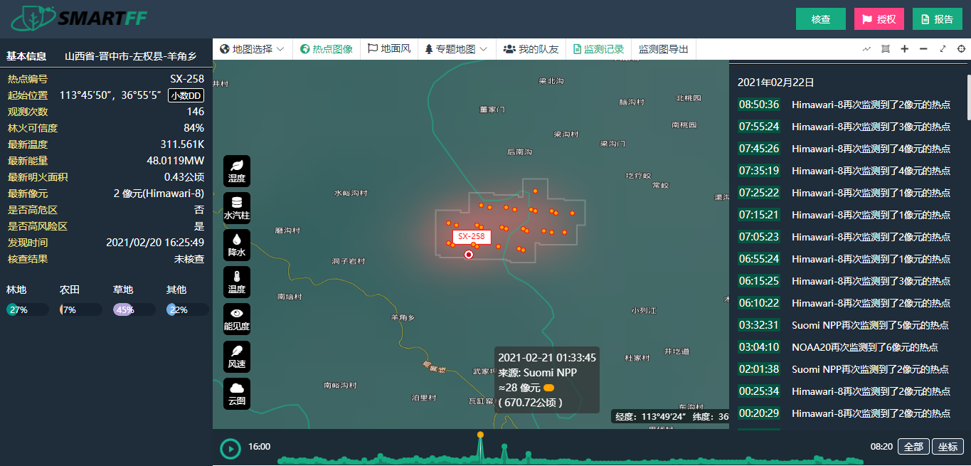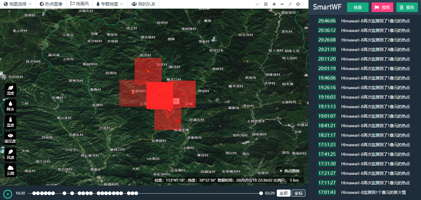 3月17日12時(shí)45分,公司林火衛(wèi)星監(jiān)測(cè)平臺(tái)監(jiān)測(cè)到山西省晉中市榆社縣有熱點(diǎn),初始位置在焦紅寺村附近,后續(xù)多顆衛(wèi)星...
