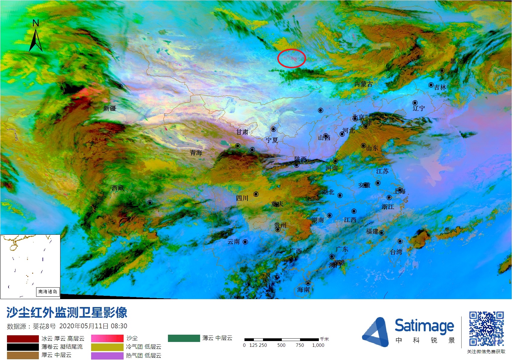 2020年5月11日至13日,我國(guó)華北地區(qū)遭遇了大范圍大風(fēng)沙塵天氣。衛(wèi)星遙感第一時(shí)間監(jiān)測(cè)并持續(xù)跟蹤了此次沙塵的傳...